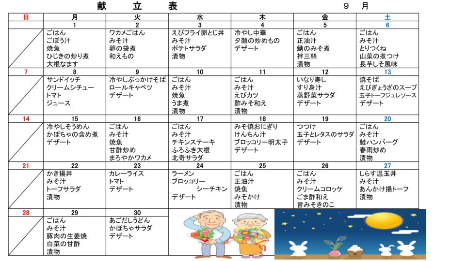 令和7年度9月八幡デイ昼食献立