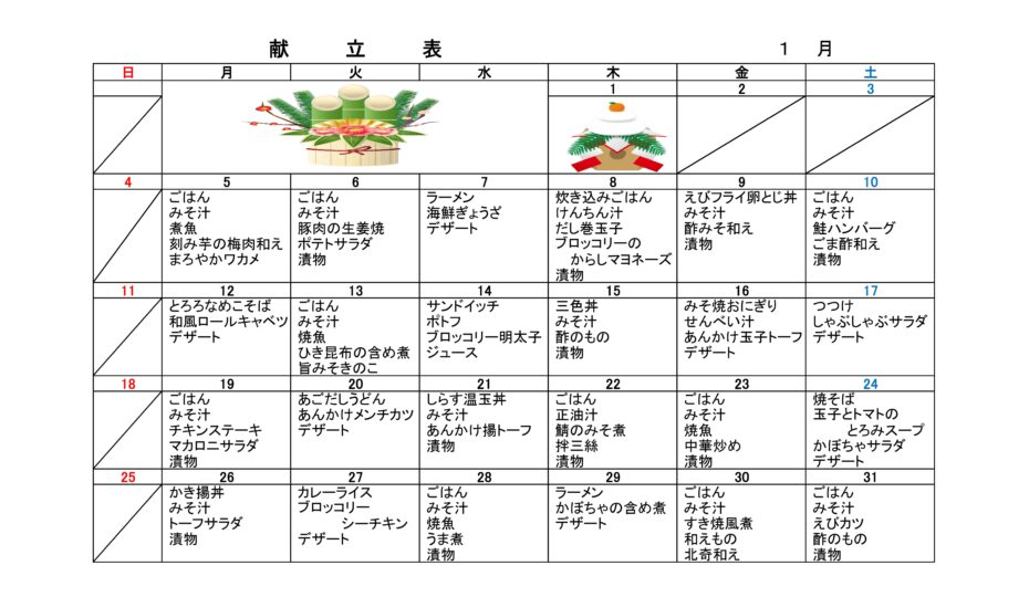 令和7年度1月デイサービス昼食献立