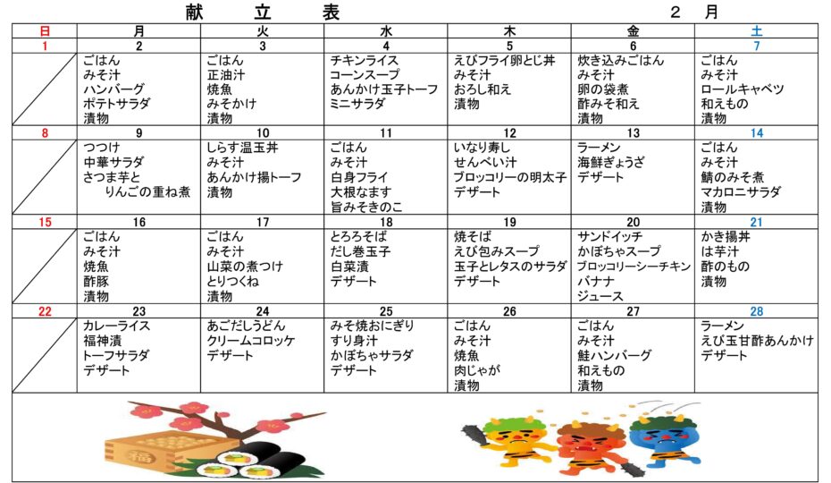 令和7年度2月デイサービス昼食献立
